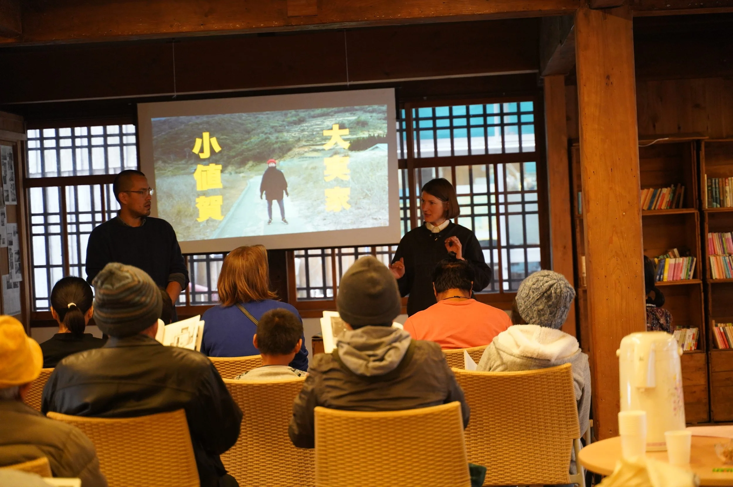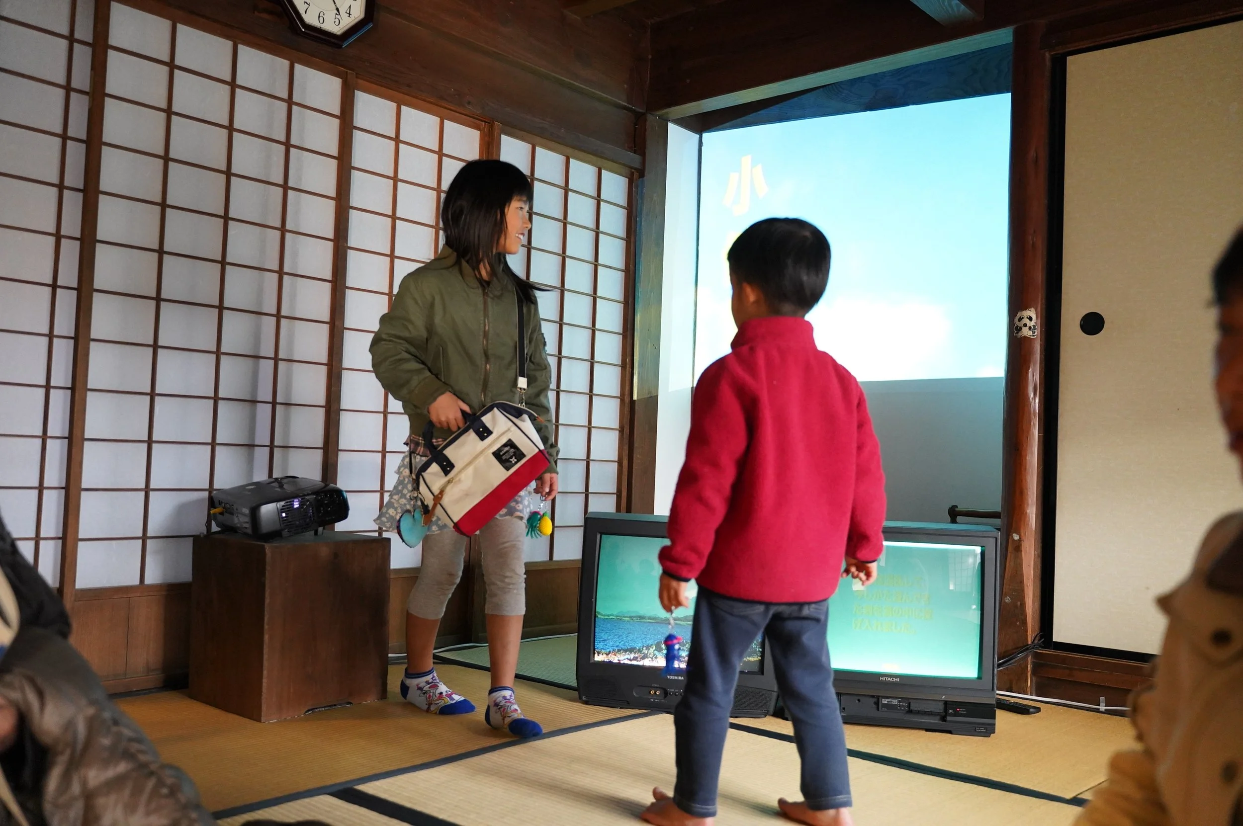 In parallel, Studio The Future created a book intended as a foundational text for future residencies—gathering local stories, observations, and myths that would continue to inspire later participants. They also developed a video installation composed of multiple screens, telling the stories of three Ojika legends: two drawn from local history and one newly written by Studio The Future.