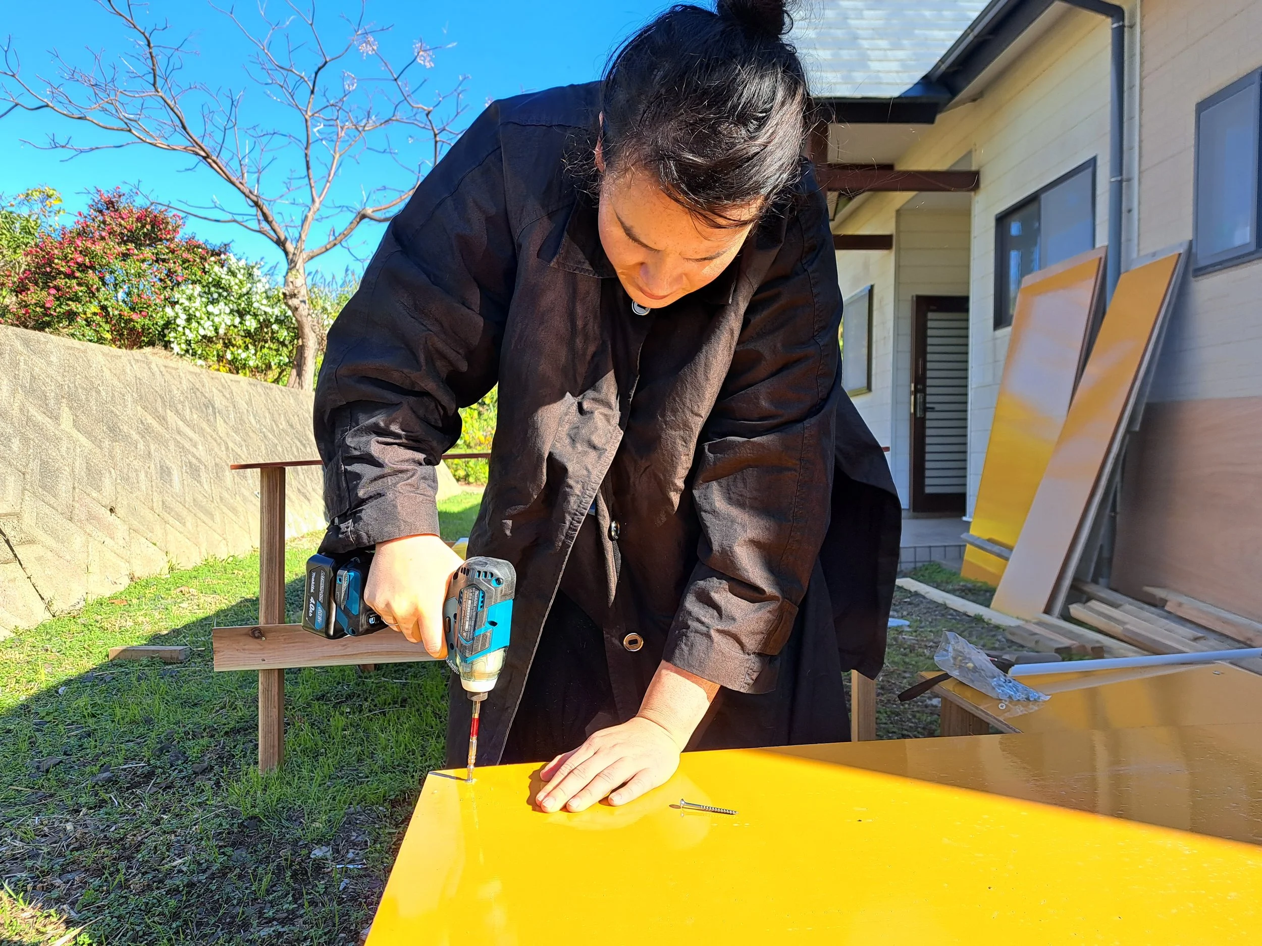 In addition, she used the Kyu-Konishitei building to present an exhibition of her observations, findings, and reflections on Ojika. The outdoor space used for her furniture and spatial interventions was an empty lot near the town center.